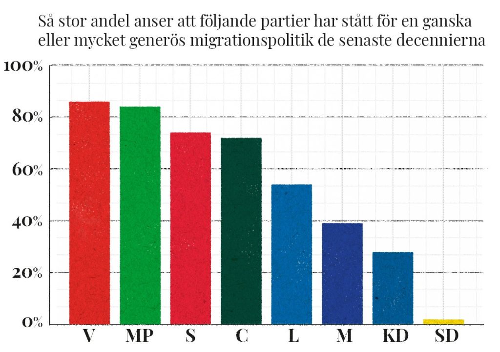 För att ta reda på hur allmänheten ser på ansvarsfrågan har Kvartal låtit Demoskop genomföra en opinionsundersökning av frågan: I hur stor utsträckning har olika partier stått för en generös eller restriktiv migrationspolitik de senaste decennierna?