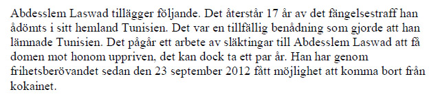 Abdesslem Laswad vistas illegalt i Sverige i ett drygt år innan han i september 2012 grips tillsammans med två andra män i Malmö.