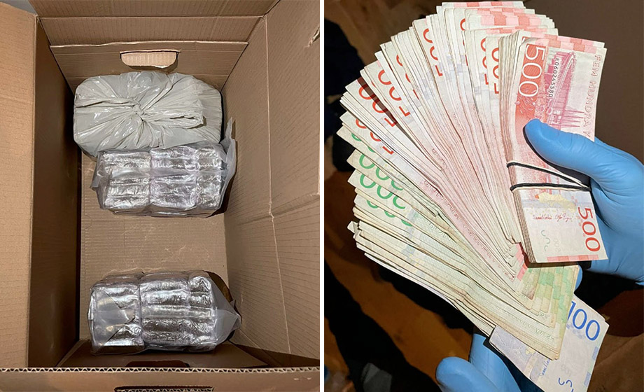 Vid en husrannsakan mot den 33-åriga kvinnan hittas, förutom en Biltema-flyttkartong med narkotika, påsar med narkotikarester och en våg, även 57 000 kronor i kontanter.