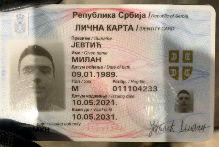 Milans serbiska ID-kort. Bild: Polisen.