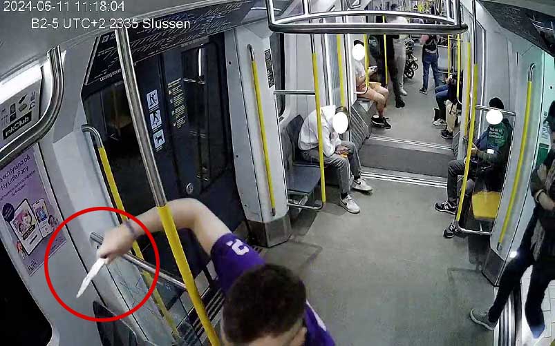 Händelsen inträffade strax före lunchtid den 11 juni. Den serbiske migranten satte bakifrån en kniv över ynglingens hals och när denne försökte fly blev han omkullvräkt på t-banevagnens golv och fick ta emot upprepade hugg i bland annat ryggen.