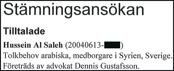 Hussein ansökte om uppehållstillstånd den 20 juli 2015 och fick permanent uppehållstillstånd den 26 juli 2016. Hussein kom till Sverige som ”ensamkommande barn”, men ändå tillsammans med sin farbror.
