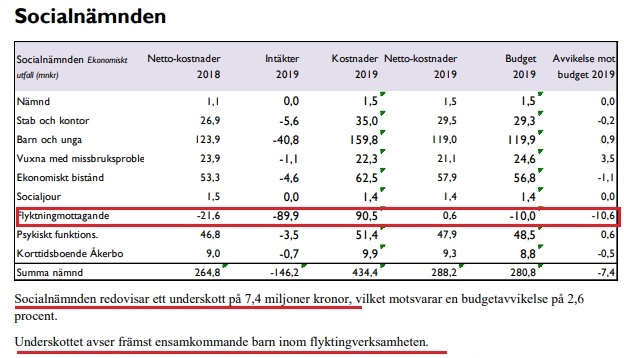 Samhällsnytt har tittat närmare på Sollentuna kommuns årsredovisning för år 2019. Redan där gick det att utläsa att socialnämnden redovisat ett underskott på 7,4 miljoner kronor och att underskottet främst avser ’ensamkommande barn’ inom flyktingverksamheten.