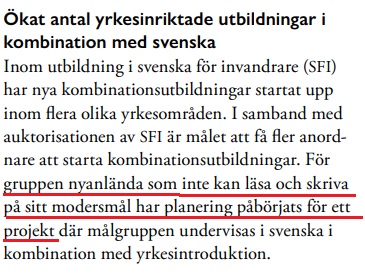 I årsredovisningen för 2018 framgick det att kommunen var tvungen att lansera nya utbildningar för migranter som är analfabeter och varken kan läsa och skriva på sitt eget modersmål.