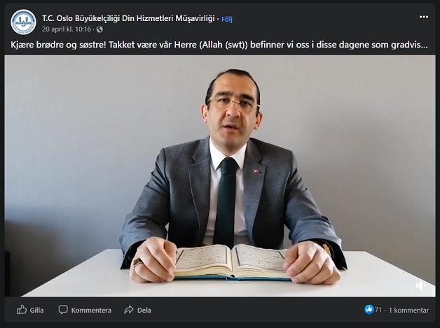 På den turkiska ambassadens Facebooksida har Ozer publicerat en video där han ses sitta med en Koran och presenterar en kampanj som pågår under Ramadan. Videor med islamska budskap riktade mot turkiska ungdomar i Norge publiceras dagligen under den en månad långa kampanjen.