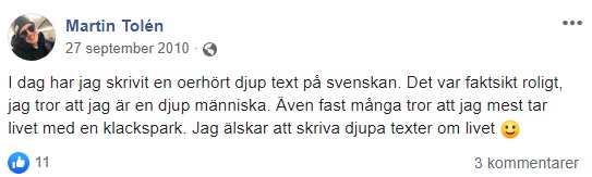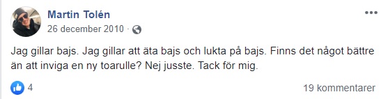 En nätgranskning av gammelmediereporterns flöde på Facebook visar att han bland annat roar sig med kiss- och bajs-skämt.