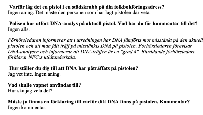 När polisen ställde frågor om hur rapartistens DNA hamnat på pistolen hade han inget svar.
