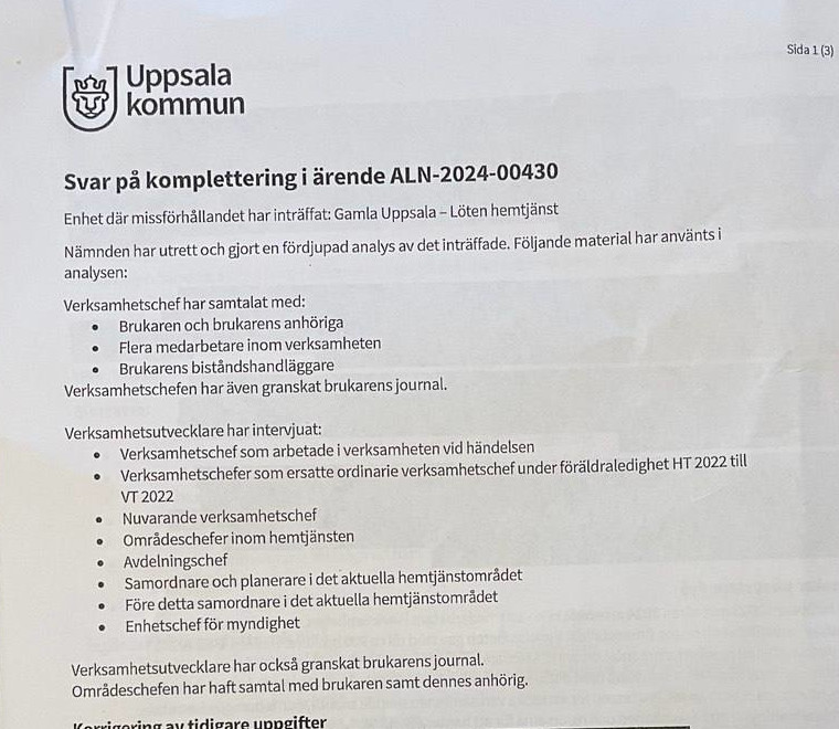 I internutredningen, som Samnytt delvis fått ta del av, konstateras att det under hösten 2023 och våren 2024 arbetade omkring hundra personer inom hemtjänsten Gamla Uppsala – Löten.