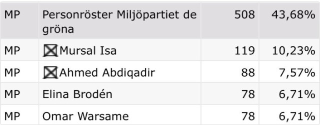 I Borlänge var det istället Elina Brodén som åkte ur fullmäktige till förmån för Mursal Issa och Ahmed Abdiqadir som både kryssade sig före.