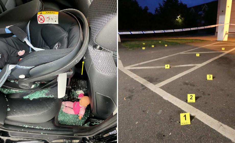 27-åringen träffas av skott, bland annat i huvudet, och avlider. Kulorna viner även runt dottern som sitter i en bilbarnstol; men hon klarar sig oskadd.