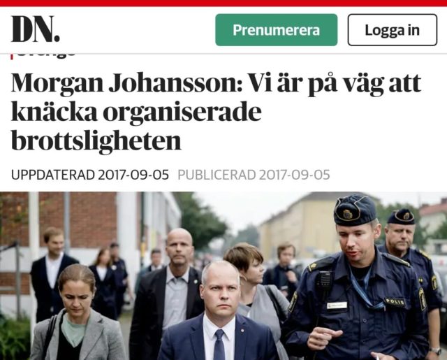 År 2018 lugnande justitieminister Morgan Johansson (S) Sveriges invånare med att det är en väldigt liten risk för oskyldiga att drabbas av våldsutvecklingen bland gängkriminella med skjutningar och sprängningar.