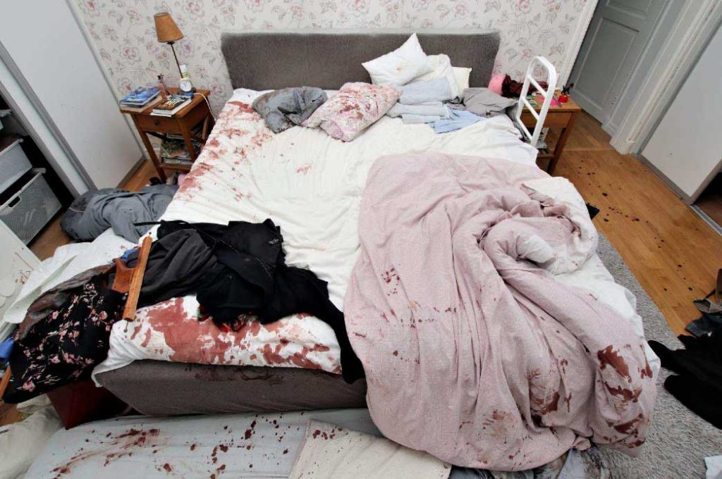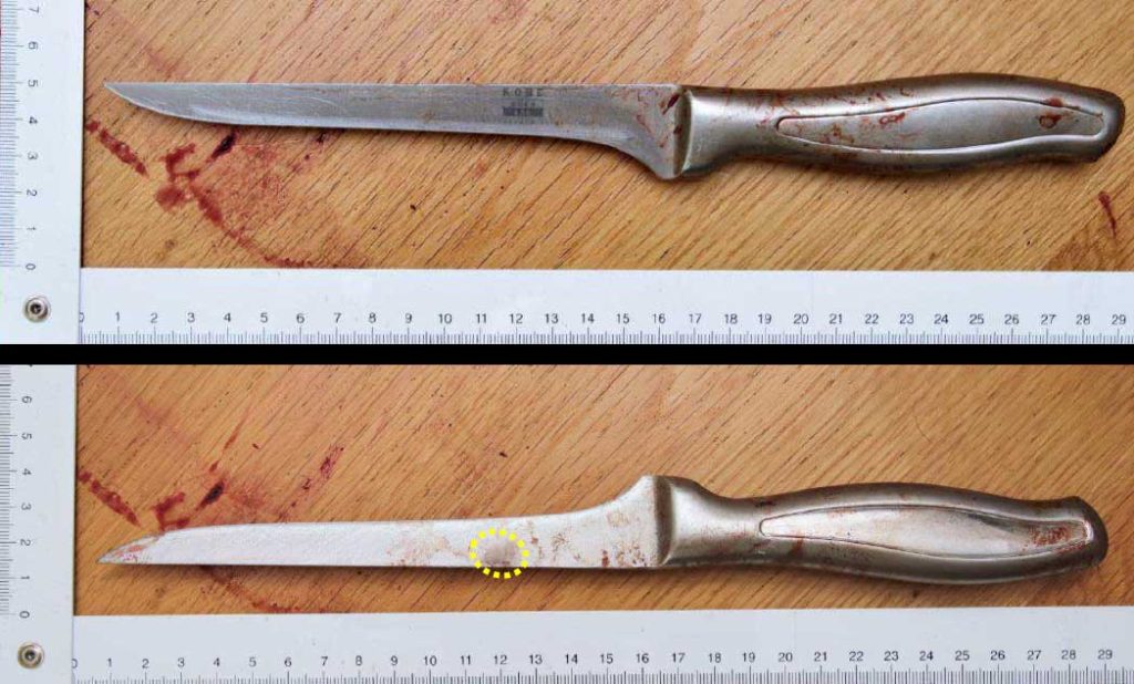 Kvinnan tillfogades ett tiotal hugg mot kropp och ansikte när hon låg i sängen och åsamkades en rad sårskador, inklusive en punkterad lungsäck med inre blödning.