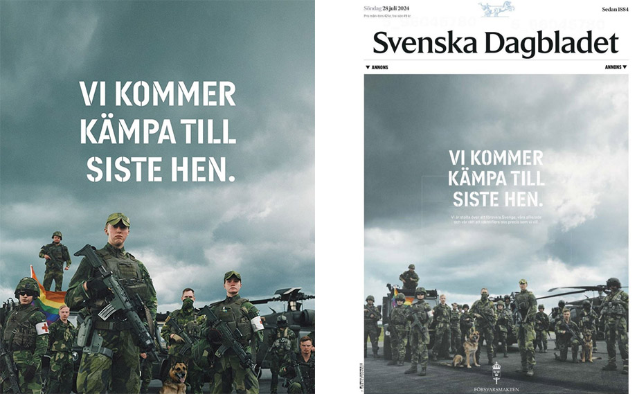 Det är under söndagen som Försvarsmakten lanserar ännu en politisk kampanj i sociala och traditionella medier. Anledningen är Stockholm Pride vecka 31. Bland annat köps hela Svenska dagbladet upp för kampanjen.