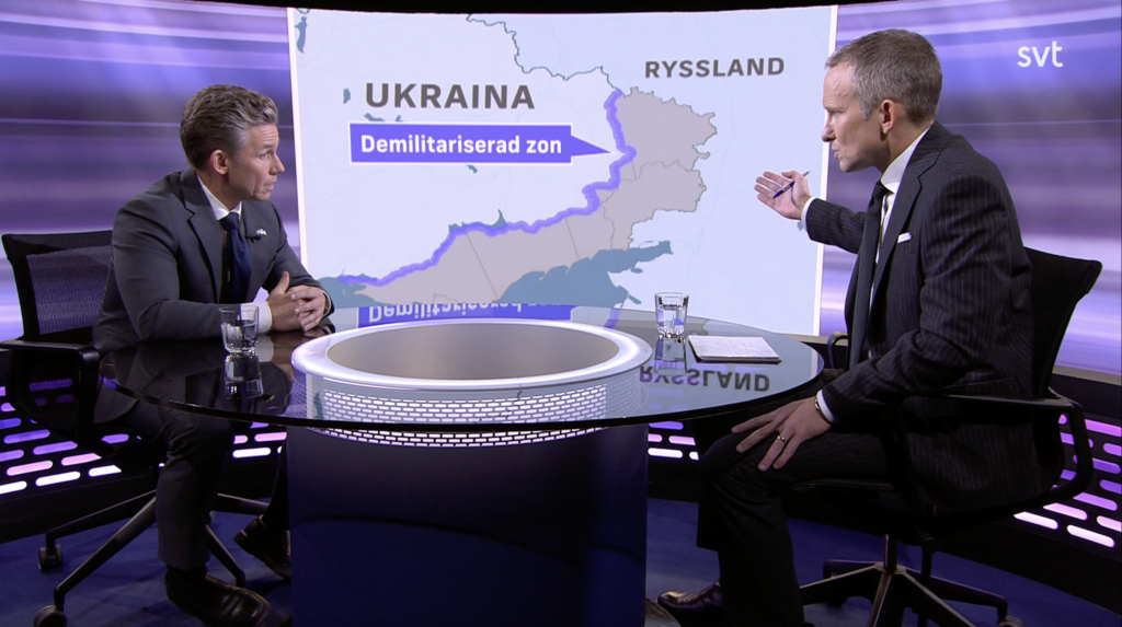 Pål Jonson fick frågor om demilitariserad zon i Ukraina. Faksimil SVT