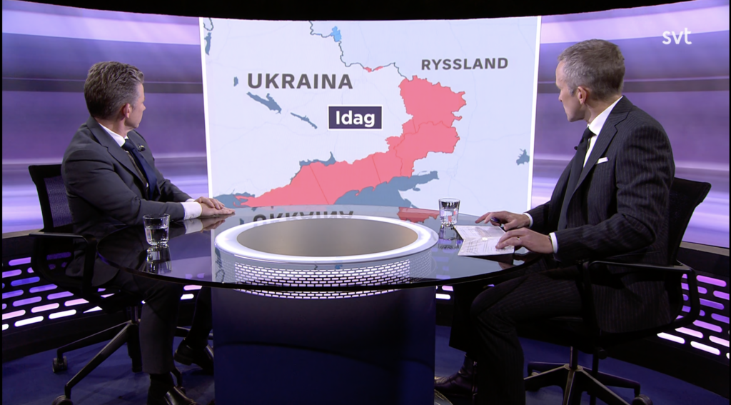 Pål Jonson inspekterar ockuperade områden i Ukraina.. Faksimil SVT