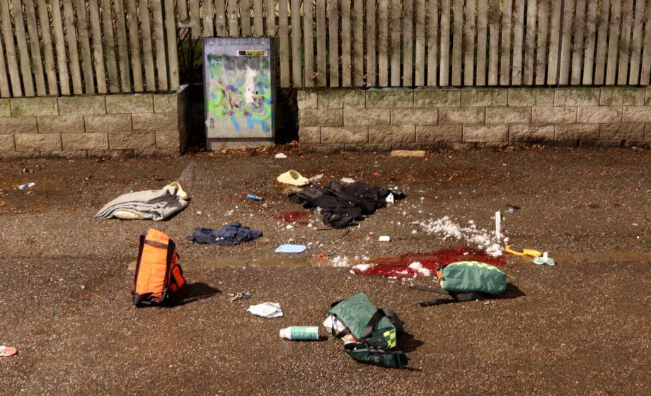 Plötsligt hörs flera höga smällar och den 17-årige pojken faller till marken. Människor springer i panik från platsen när de förstår att någon skjuter.