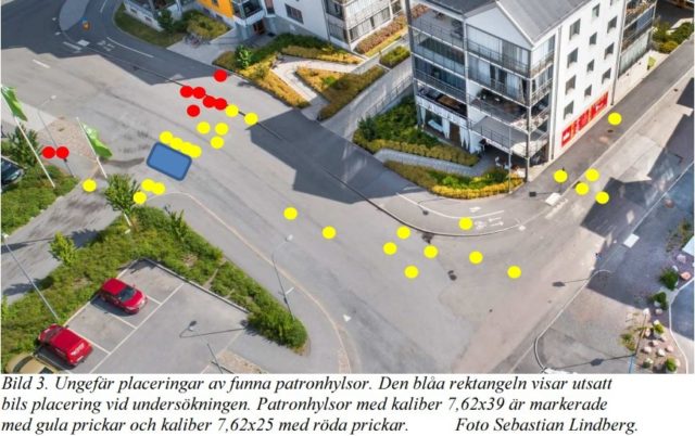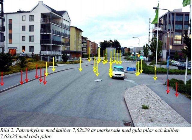 Vid sidan om offrets träffade kulorna även parkerade bilar i området.