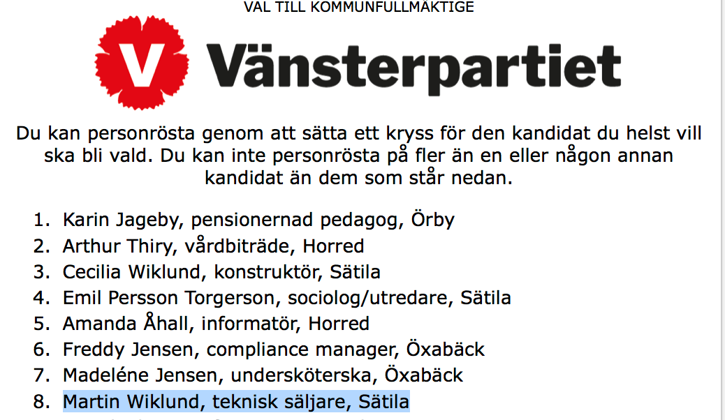 Wiklund ställer idag upp som åttonde namn för partiet i Marks kommun.