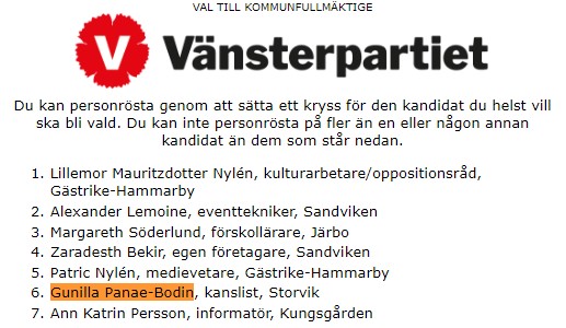 Gunilla Panae-Bodin – kandidat i Sandviken Gunilla ställer upp som sjättenamn i Sandvikens kommun och har enligt Svea hovrätt befattat sig med hela tre kilo cannabis.