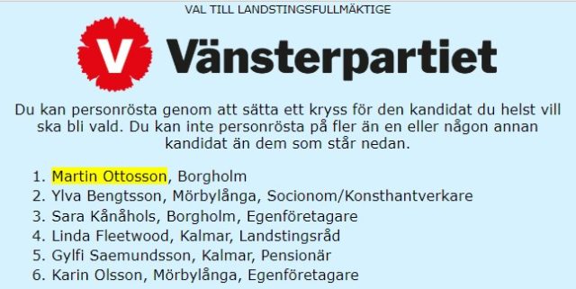 Martin Ottosson – förstanamn för Kalmars läns landsting Martin Ottosson ställer upp som förstanamn för Vänsterpartiet i Kalmar och får därför antas få en plats i landstinget med full garanti.