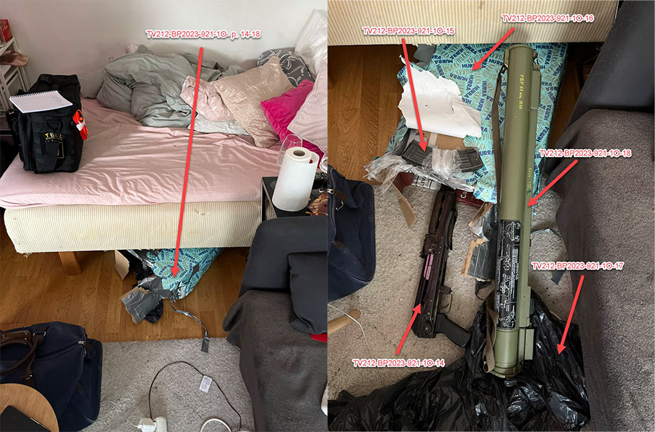 Men det fynd som sticker ut görs under Jennys säng. I ett presentinslaget paket med texten ”Hurra” på, hittas dels en automatkarbin, AK47, dels ett pansarskott.