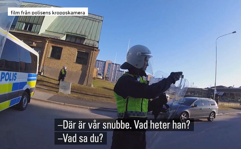 Han blir dessutom igenkänd och identifierad av polis på plats under pågående upplopp.