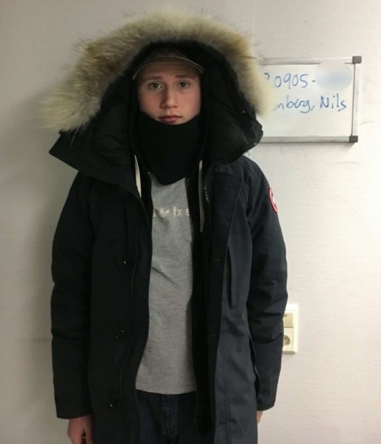 T.v. Nils ”Einár” Grönberg hos polisen. Foto: Polisen/Instagram