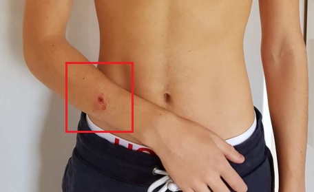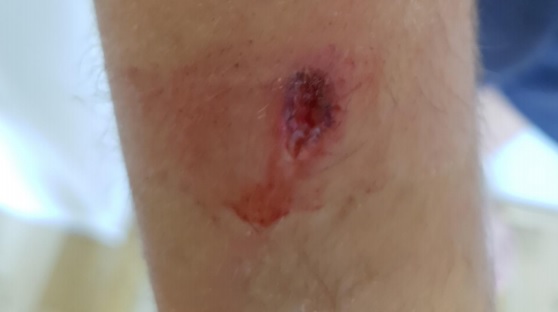 Brottsoffrets knivskador. Foto: Polisen