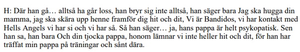 Nedan följer ett utdrag från förhören med målsägande där det framgår att pojkarna ska göras handikappade.