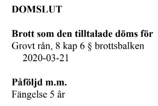 På fredagen meddelade Kalmar tingsrätt dom mot männen som som är hemmahörande i Småland. De fälls mot sitt nekande för grovt rån och ska avtjäna fem år i fängelse och betala skadestånd på drygt 300 000 kronor till Ros-Marie.
