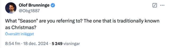 ´Militäralliansen Nato har publicerat en hälsning från Sverige inför julhögtiden men utan att nämna ordet jul. Istället kallas det för ”Seasons greetings” och det har väckt reaktioner.