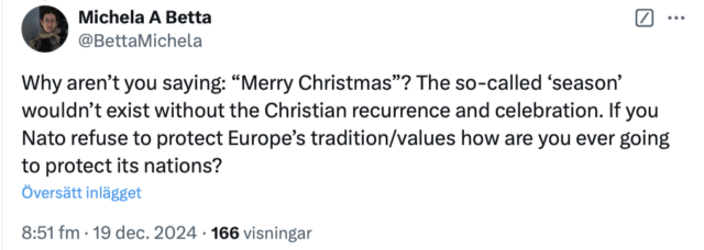 I kommentarerna under inlägget har flera reagerat på att Nato tydligt undviker ordet ”jul”.