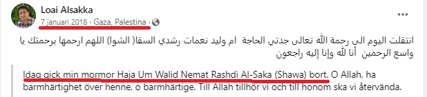 En genomgång av Loai Alsaqqas sociala medier visar att han under de senaste åren har vistas frekvent på Gazaremsan. Samtidigt som Alsaqqa påstår att han enbart har rest till Gaza för att besöka sin ”100-åriga mormor” visar ett Facebookinlägg från Alsaqqa den 7 januari 2018 med den geografiska platsen Gaza något annat.
