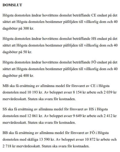 Högsta domstolen Efter flera överklaganden har nu Högsta domstolen i Stockholm fattat beslut i ärendet. SVT-journalisten Fredrik Önnevall och hans två medarbetare döms för människosmuggling till villkorligt och dagsböter men slipper samhällstjänst som de ålagts i lägre instans.