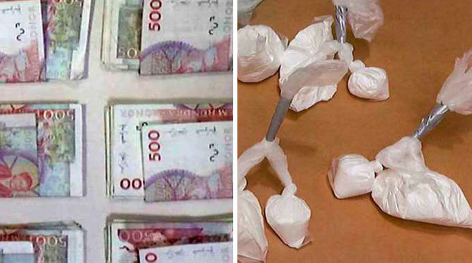 När polisen slog till hittade man stora mängder knark och stora summor pengar.