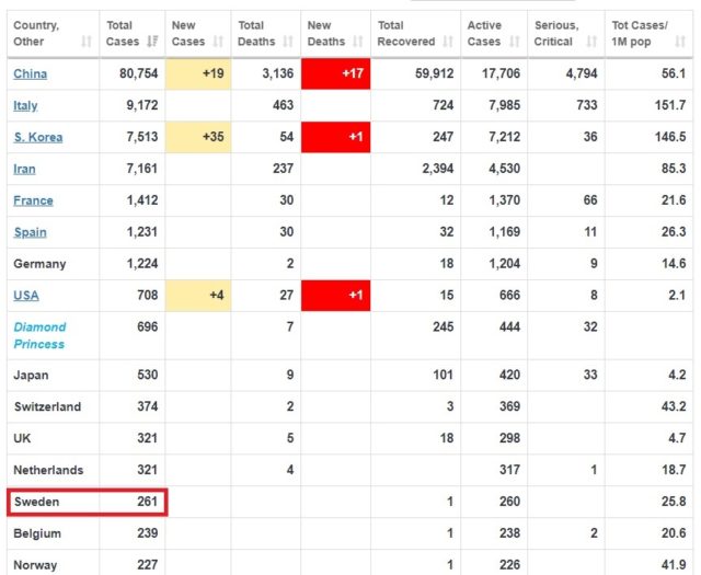 En färsk uppdatering från Worldometers rörande coronasmittan siffror visar att Italien har 9 172 smittade varav 463 dödsfall sedan viruset upptäcktes i landet för första gången den 31 januari.