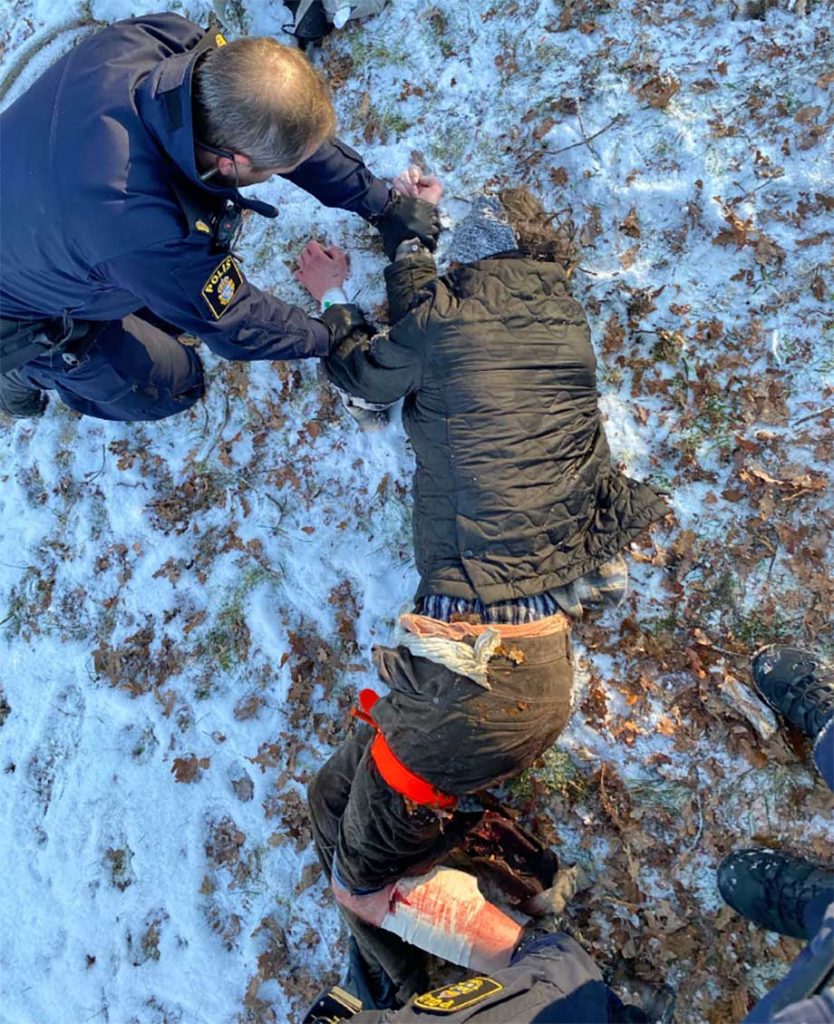 Polisen tog upp jakten på den flyende mannen. Vid ett skogsparti stannade 35-åringen, vände sig om och gick till attack mot poliserna med svärdet.