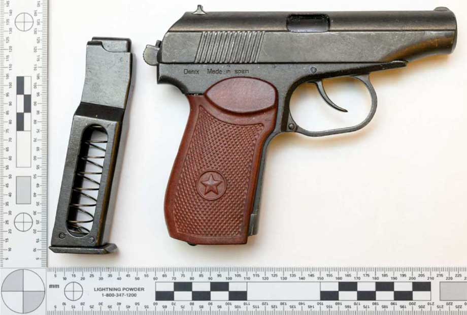 Gärningsmannen grips / Vapen mannen hade på sig. Bild: Polisen.
