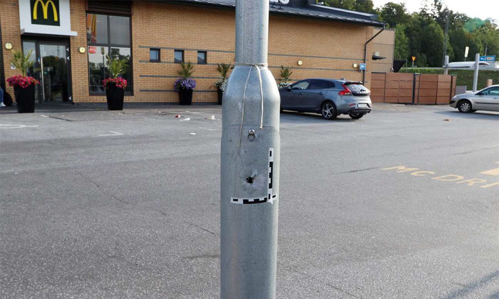 Kulhål i stolpe utanför McDonald’s. Foto: Polisens förundersökning