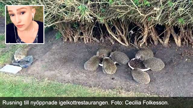 Det är emellertid inte överallt som de fridlysta djuren behandlas illa. I Genaved strax söder om Halmstad har Cecilia Folkesson öppnat en restaurang för igelkottar.