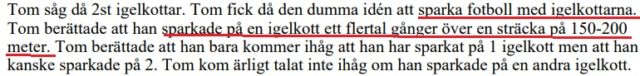 I polisförhör uppger Patlis att han sparkade fotboll med igelkottarna flera gånger utmed en sträcka på cirka 150-200 meter.