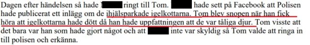 Det var den 19 augusti förra året som en kvinna vid stationen i Hultsfred bevittnade hur två män sparkade på minst en igelkott samtidigt som de skrattade, vilket lokaltidningen Dagens Vimmerby var först med att rapportera.