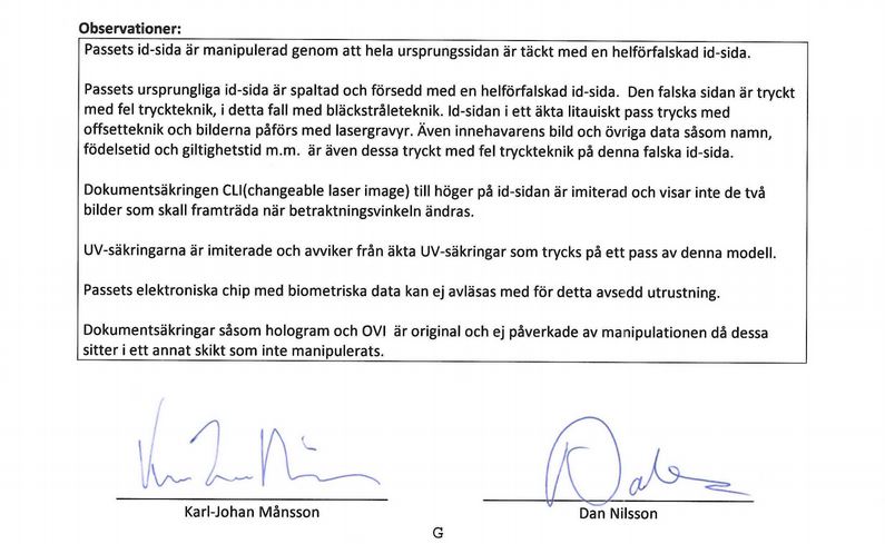 Vakterna blev misstänksamma och bad honom identifiera sig varpå han sprang iväg och blev gripen. I väskan hittade man ett antal kort och legitimationer, inklusive ett förfalskat litauiskt pass med inklistrad bild på mannen: