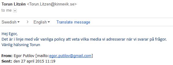 När jag kontaktade Kinneviks presstjänst för en kommentar frågade de direkt vilken tidning jag skriver för. Det var nämligen ett villkor för att överhuvudtaget få några svar på frågor.