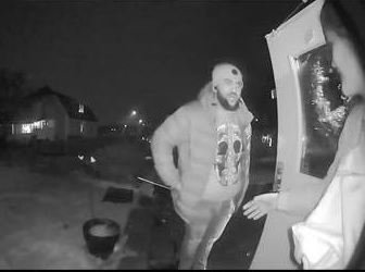 Mannen anländer till Annies bostad. Foto: Faksimil Facebook