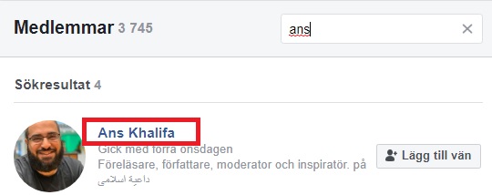 I Facebookgruppen syns flera framstående islamister bland annat Anas Khalifa som enligt Doku har spridit extremism i femton års tid. Redan år 2004 skrev Khalifa på hemsidan ”Om islam” där han bland annat hyllade Usama bin Laden, uppmanade till väpnad jihad och spred antisemitism.