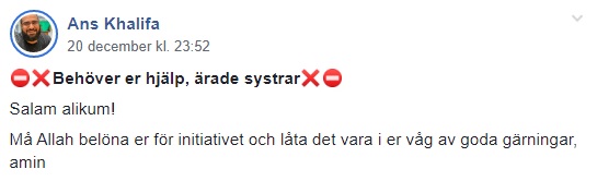Khalifa förbereder en opinionsbildande video som ska normalisera slöjan i det svenska samhället. Nedan följer en en del av hans inlägg: