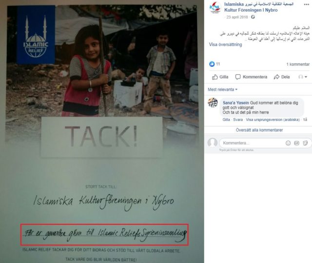 Stöttar terrorkopplad pengainsamling I sociala medier visar Islamiska kulturföreningen upp ett tydligt stöd för den kritiserade internationella biståndsorganisationen ”Islamic Relief” som baserar sin verksamhet på islamsk värderingsgrund.