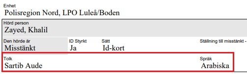 Tolkhjälp Till slut kunde kafépersonal få stopp på misshandeln av Jakob. En polispatrull anlände platsen och de två männen anhölls. Båda två var tvungna att använda tolk under polisförhören.