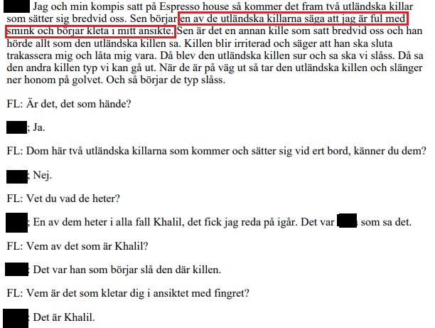 Khalil: ”Ska vi slåss?” Enligt vittnesuppgifter reagerade de två arabiska männen aggressivt på tillsägelsen från Jakob. Khalil sa följande.